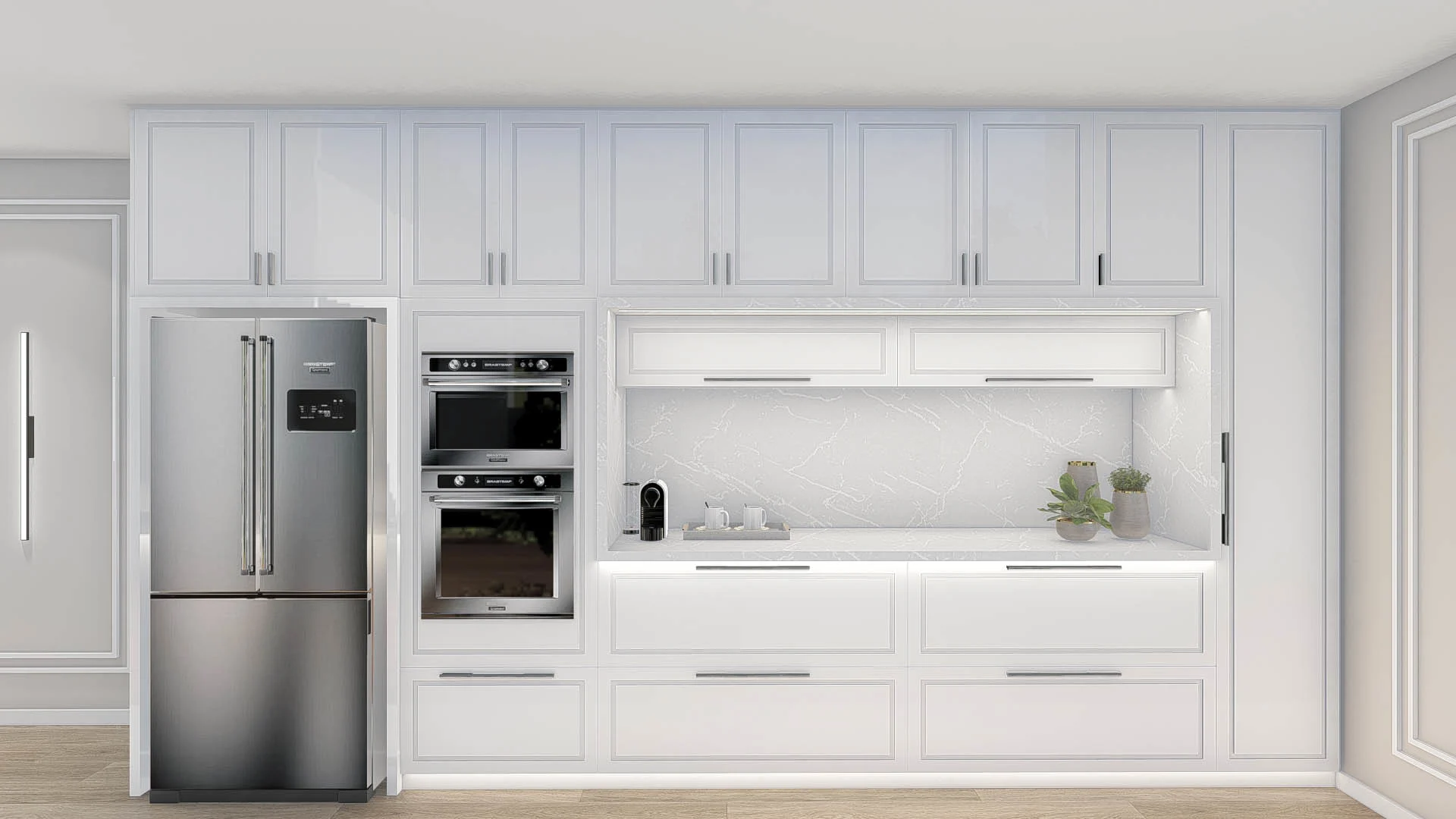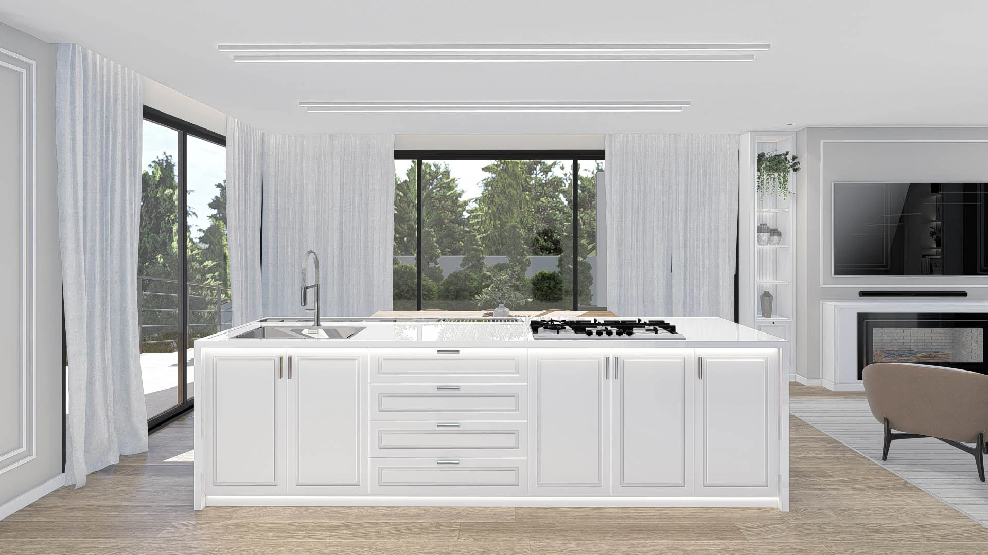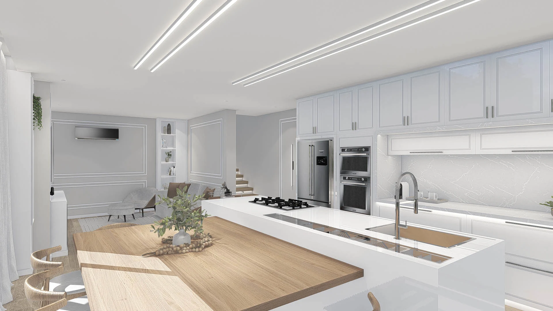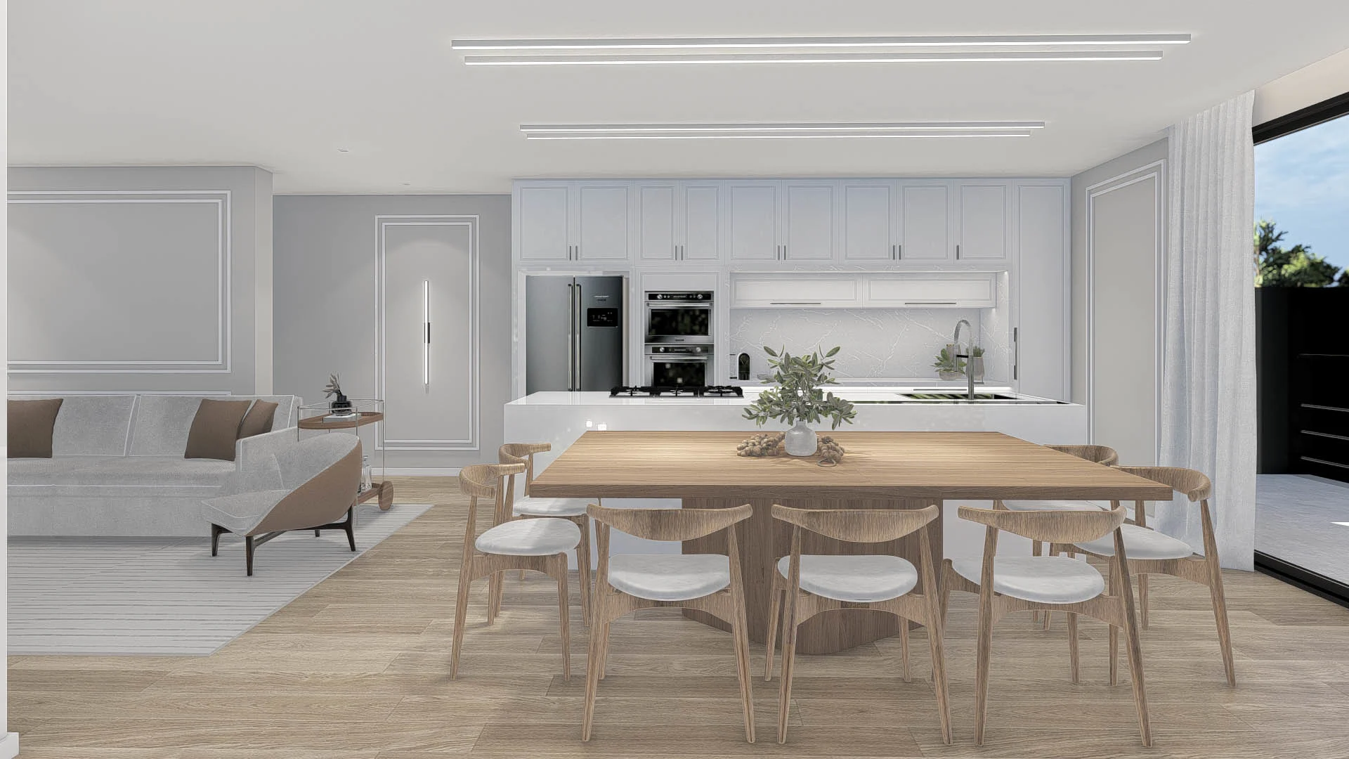 Um projeto elegante e funcional, com tons neutros e materiais que garantem sofisticação sem excessos. Um living atemporal, pensado para o dia a dia.